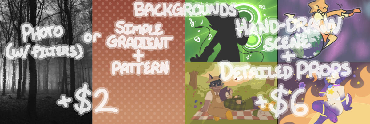 i accept payment through ko-fi, paypal, and venmo ONLY!if you do end up commissioning me, i'll have you pay after the initial sketch is to your liking. PLEASE do not send money BEFORE or AFTER this stage!!!every additional character is +50% of the original (single character) price!dm me on twitter or discord for more information!
